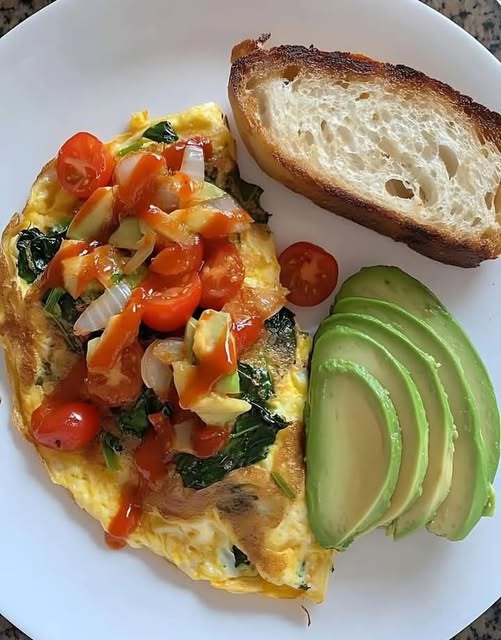 OMLET WARZYWNY Z AWOKADO I CHLEBEM NA ZAKWASIE