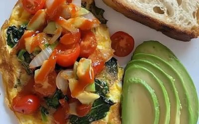 OMLET WARZYWNY Z AWOKADO I CHLEBEM NA ZAKWASIE